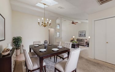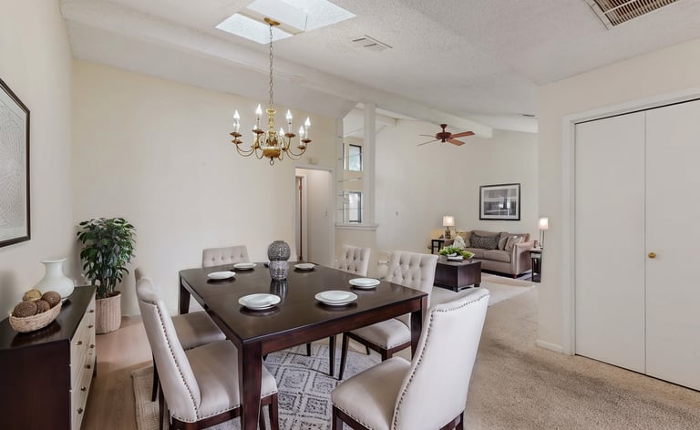 Step into this two-bedroom, two-bathroom town home which offers timeless charm, comfort, vaulted ceilings and fireplace in living area, ample formal dining area and spacious breakfast area or office off the kitchen.