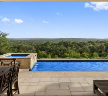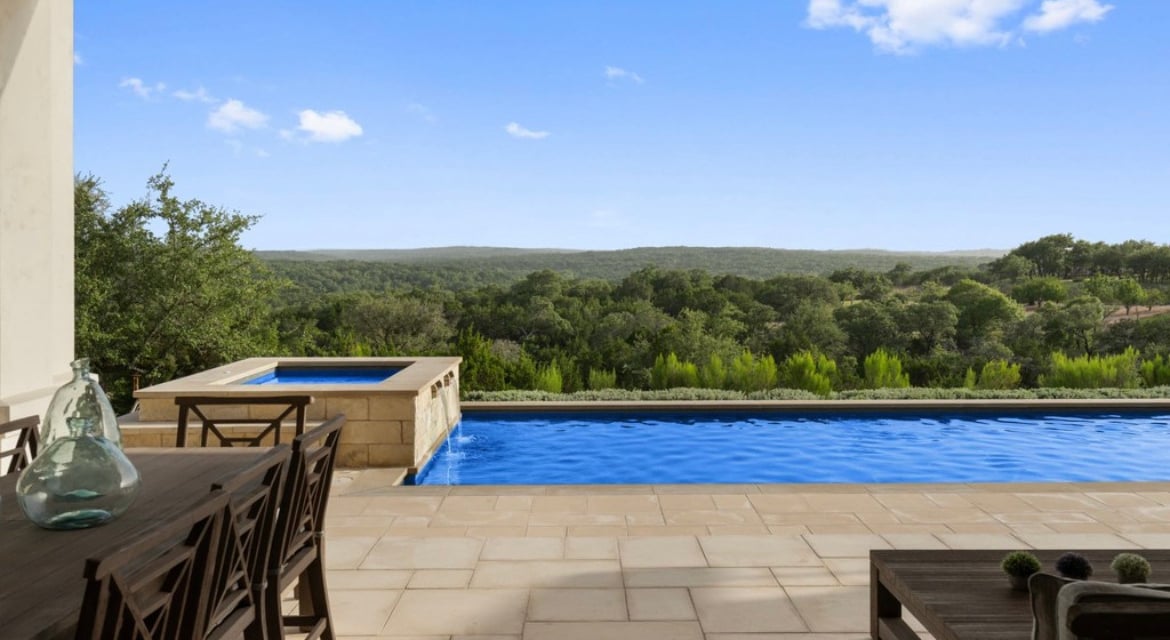 Superb single-story home with sweeping hill country views from most rooms in the house, private pool and gorgeous remodeled kitchen.